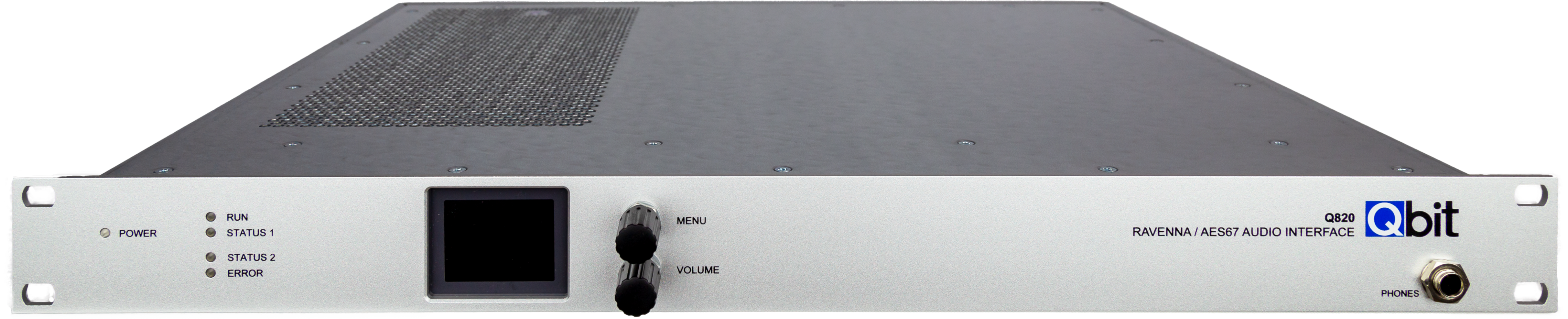 The Qbit Q820 AES67 Interface connects up to 16 digital (AES3) audio interfaces to AES67 IP-Audio networks.